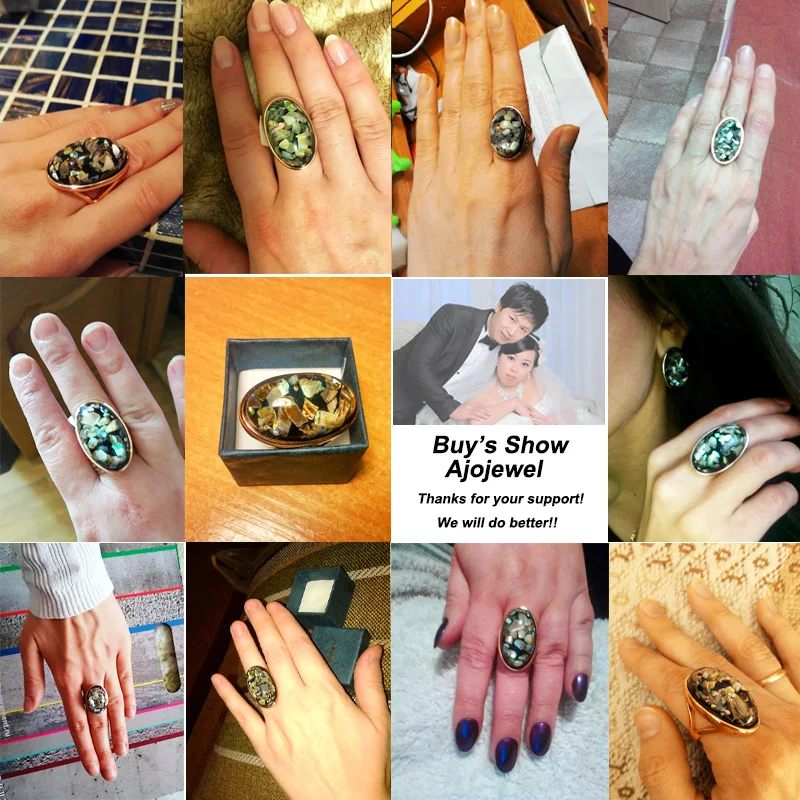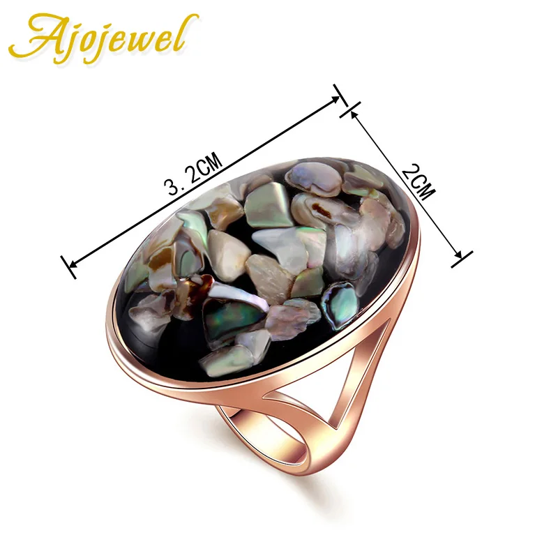 Ajojewel Unisex Big Oval Sea Shell Rings For Men Women Rose Golden Ring Size 7 8 9 10 11 12