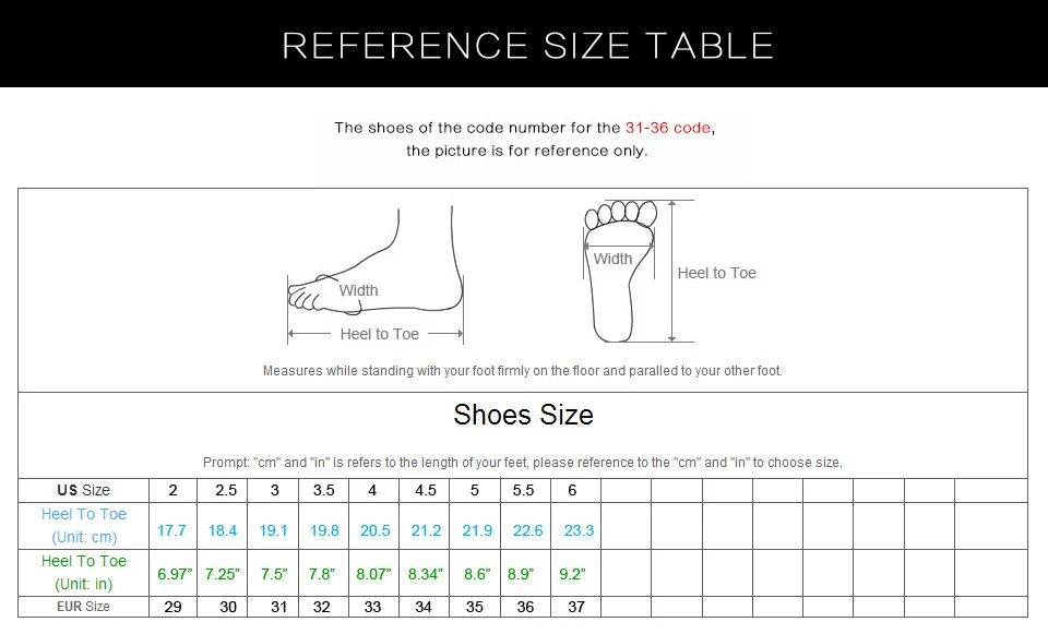 Before you make the order, you should be careful to measure your feet length (from heel to toe) and then you should pay more attention to our size table. You can find suitable size for you in our size table. Finally, you decide what size you buy.