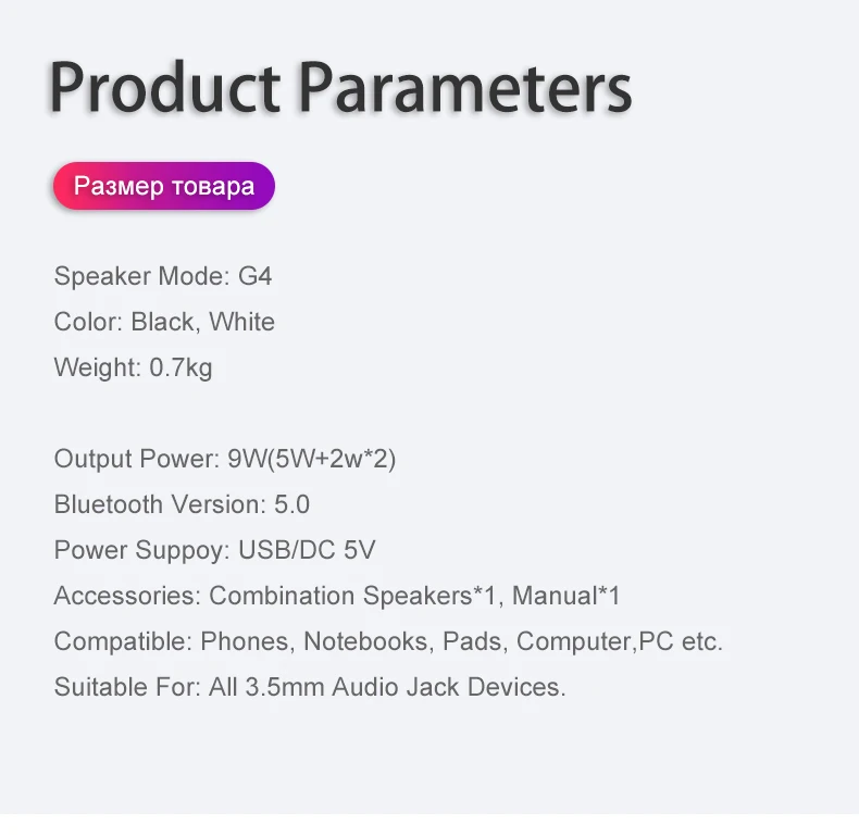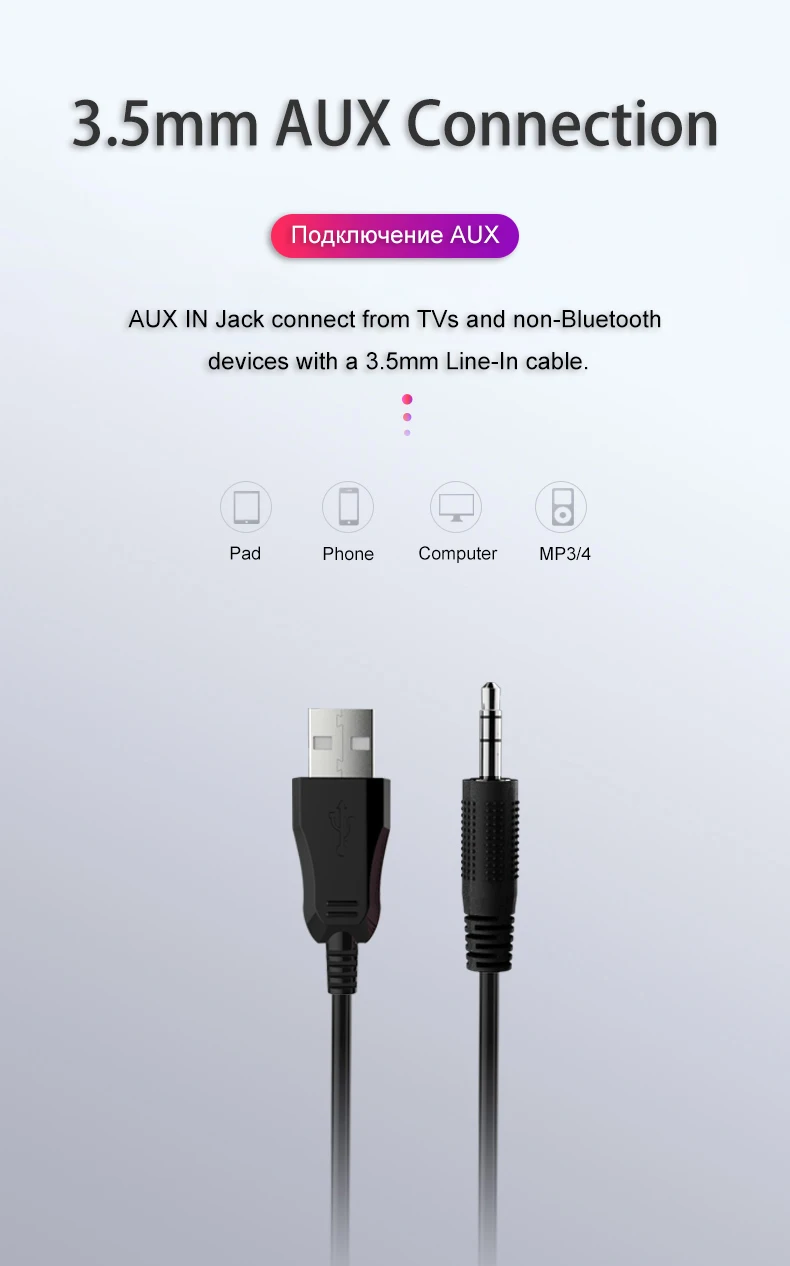 Support: Bluetooth and 3.5mm audio input