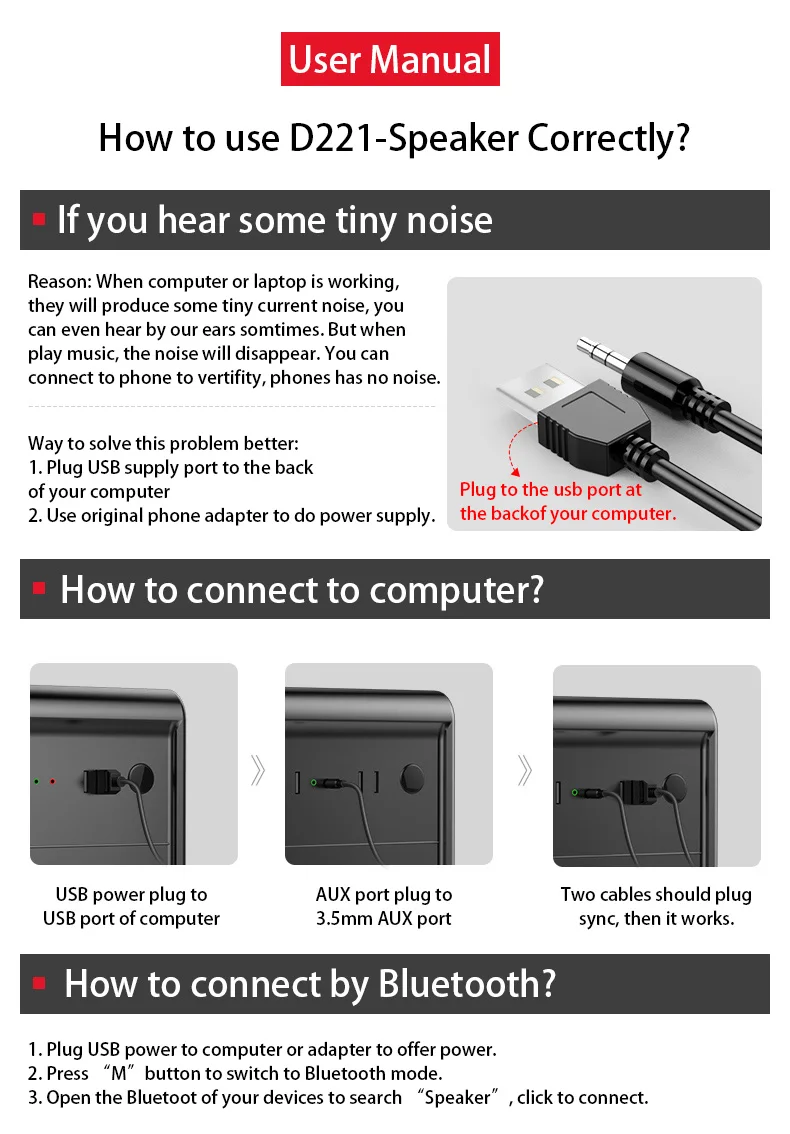 1. Plug USB cable for supply (We recommend to plug to USB 3.0 port to avoid noise caused by unstable power supply)